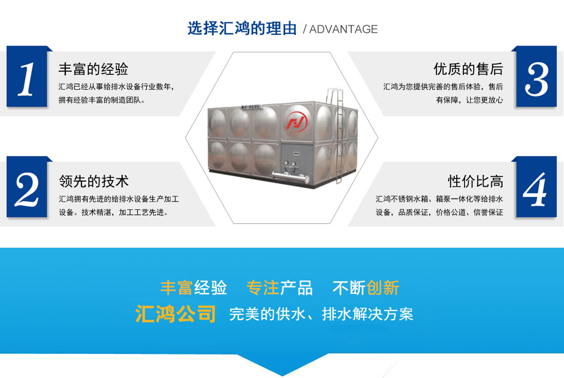 鹽城匯鴻供水設備有限公司是一家專業(yè)從事供排水設備系統(tǒng)生產(chǎn)、銷售與工程安裝于一體的專業(yè)企業(yè)。本公司主要生產(chǎn)、銷售、安裝各類不銹鋼水箱、箱泵一體化、不銹鋼保溫水箱、組合式水箱、聚氨酯保溫模塊、圓柱形水箱、消防水箱、玻璃鋼水箱、玻璃鋼化糞池等十多個系列數(shù)百種規(guī)格,產(chǎn)品廣泛應用于建筑、環(huán)保、化工、食品、消防等各個領域。具有優(yōu)質(zhì)高效、節(jié)能環(huán)保、安全可靠、實用方便等優(yōu)點,是二十一世紀商用和家用生活的首選產(chǎn)品。本公司生產(chǎn)設備先進,技術(shù)精湛,各種產(chǎn)品的加工工藝,技術(shù)性能和衛(wèi)生指標均符合國家標準,并可根據(jù)用戶提供的技術(shù)參數(shù)和要求設計制造現(xiàn)場加工……【更多詳情】 | |